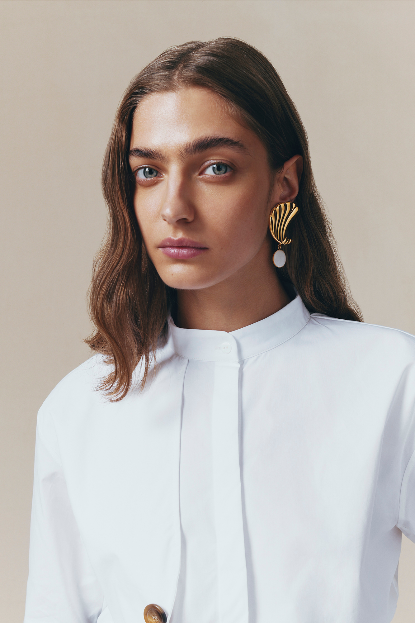Gold sculptural stud earrings with stone detail