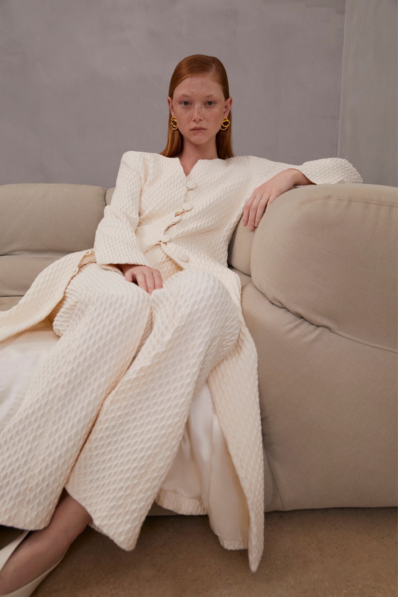 - Long sleeves and a subtle V-neckline enhance its refined style