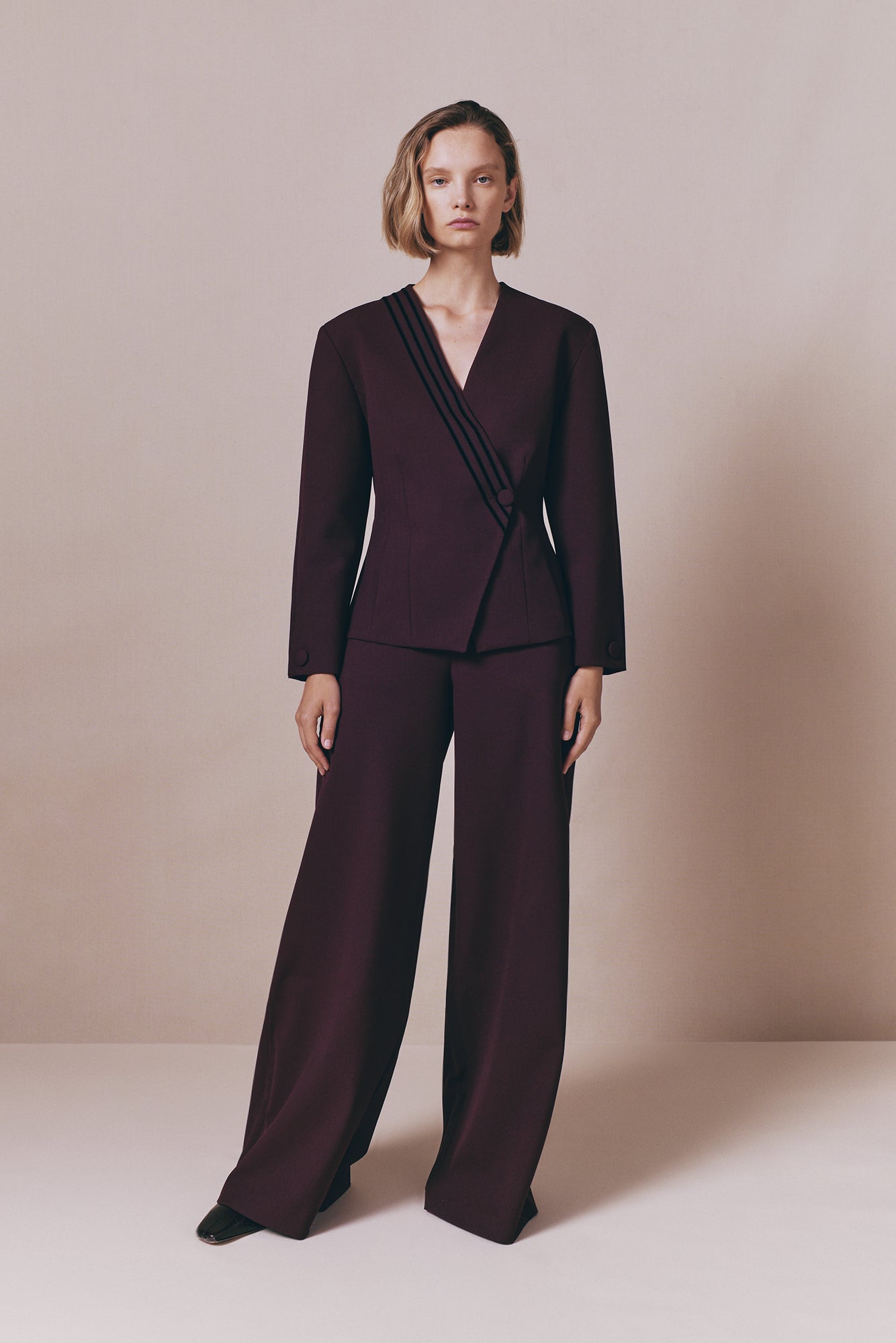 • Sleek, structured cut with precise tailoring