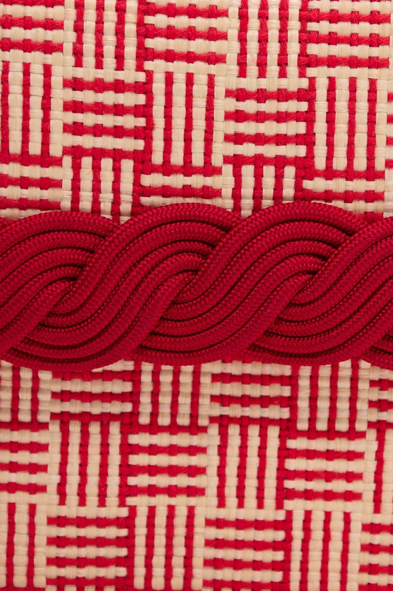 Natural & red straw clutch with braided passementerie