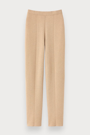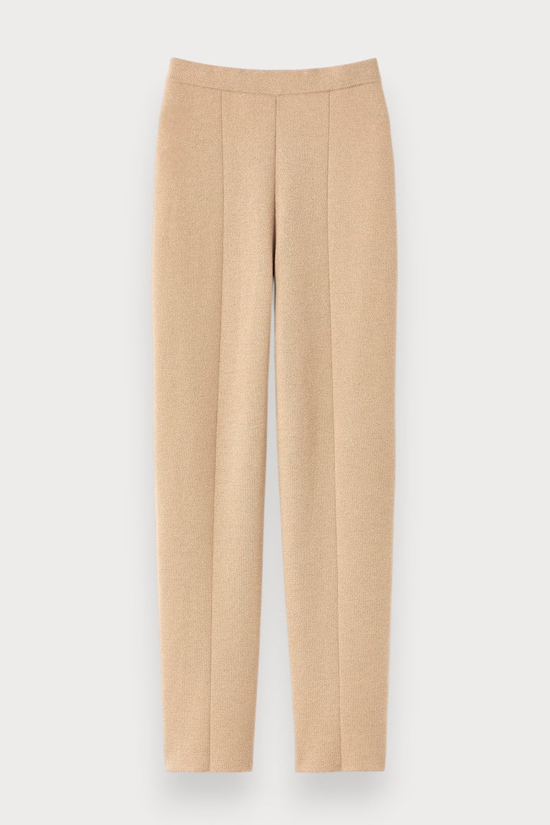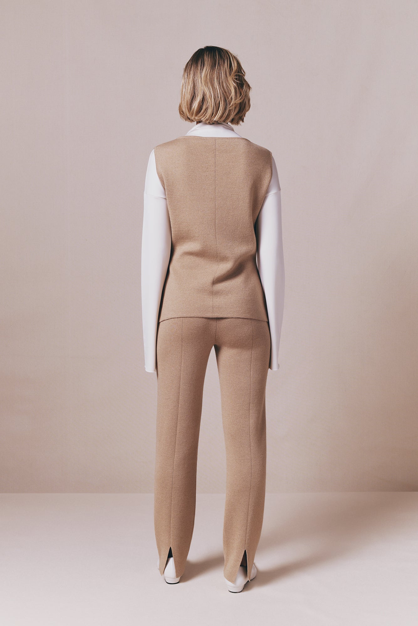 Refined camel trousers in pure merino wool, designed with a tailored fit and pressed creases for a sharp, elongating silhouette.