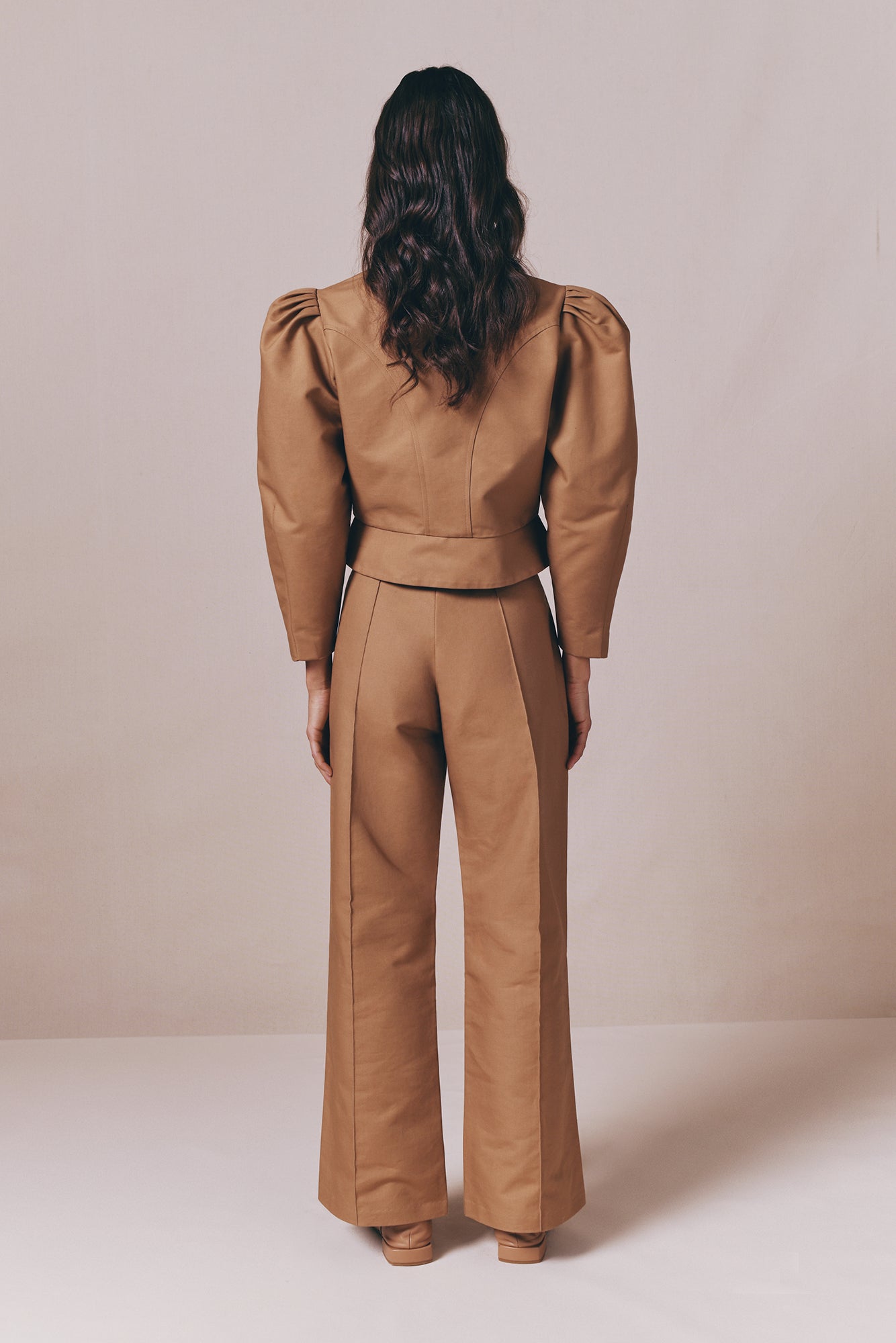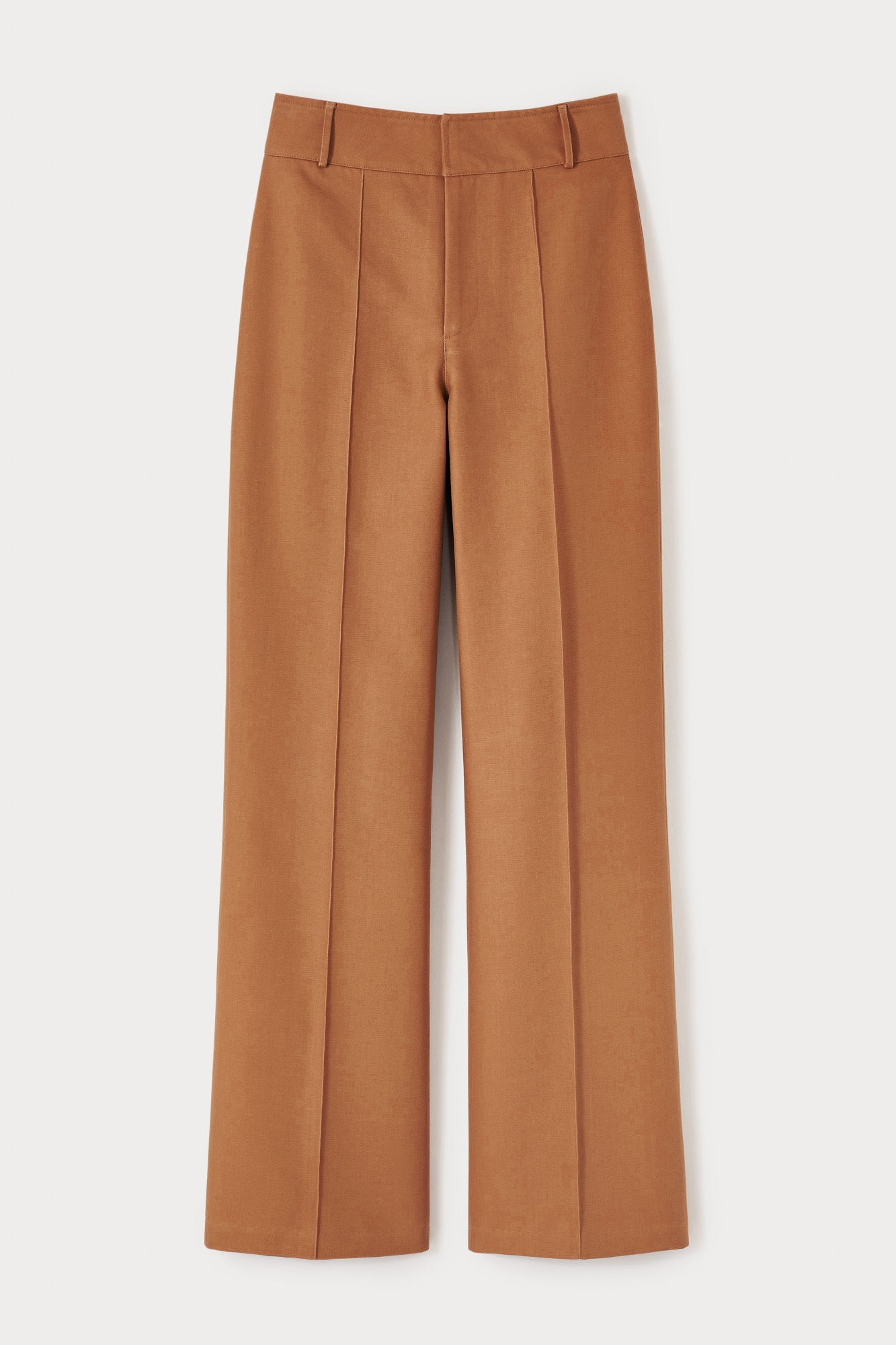The trousers are inspired by minimalist and tailored design, with an elongated and refined silhouette.