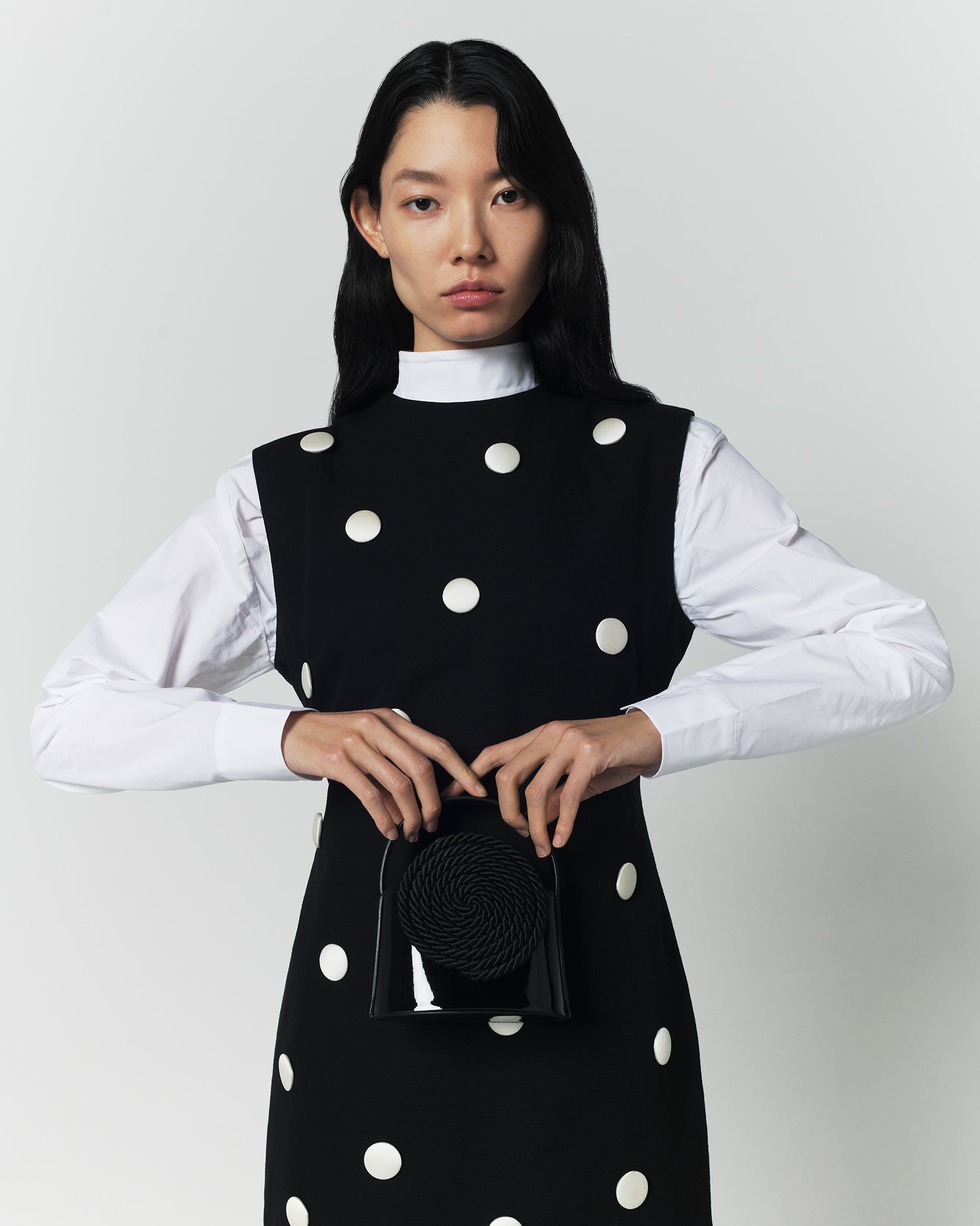 Black cotton dress with contrasting dots