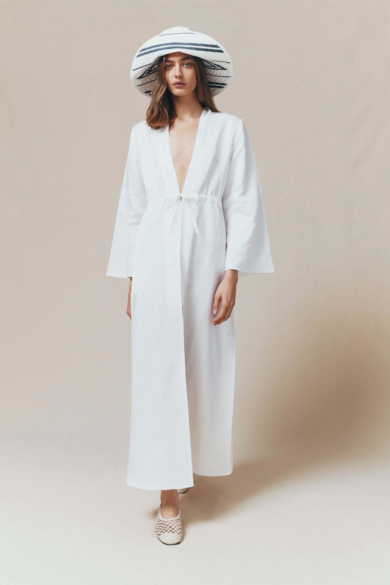 • Waist tie for a defined shape, enhancing the feminine silhouette