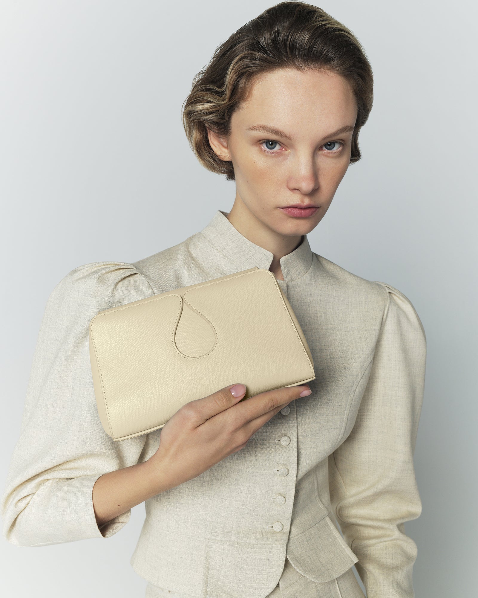 • 100% calfskin leather in an elegant ivory finish
