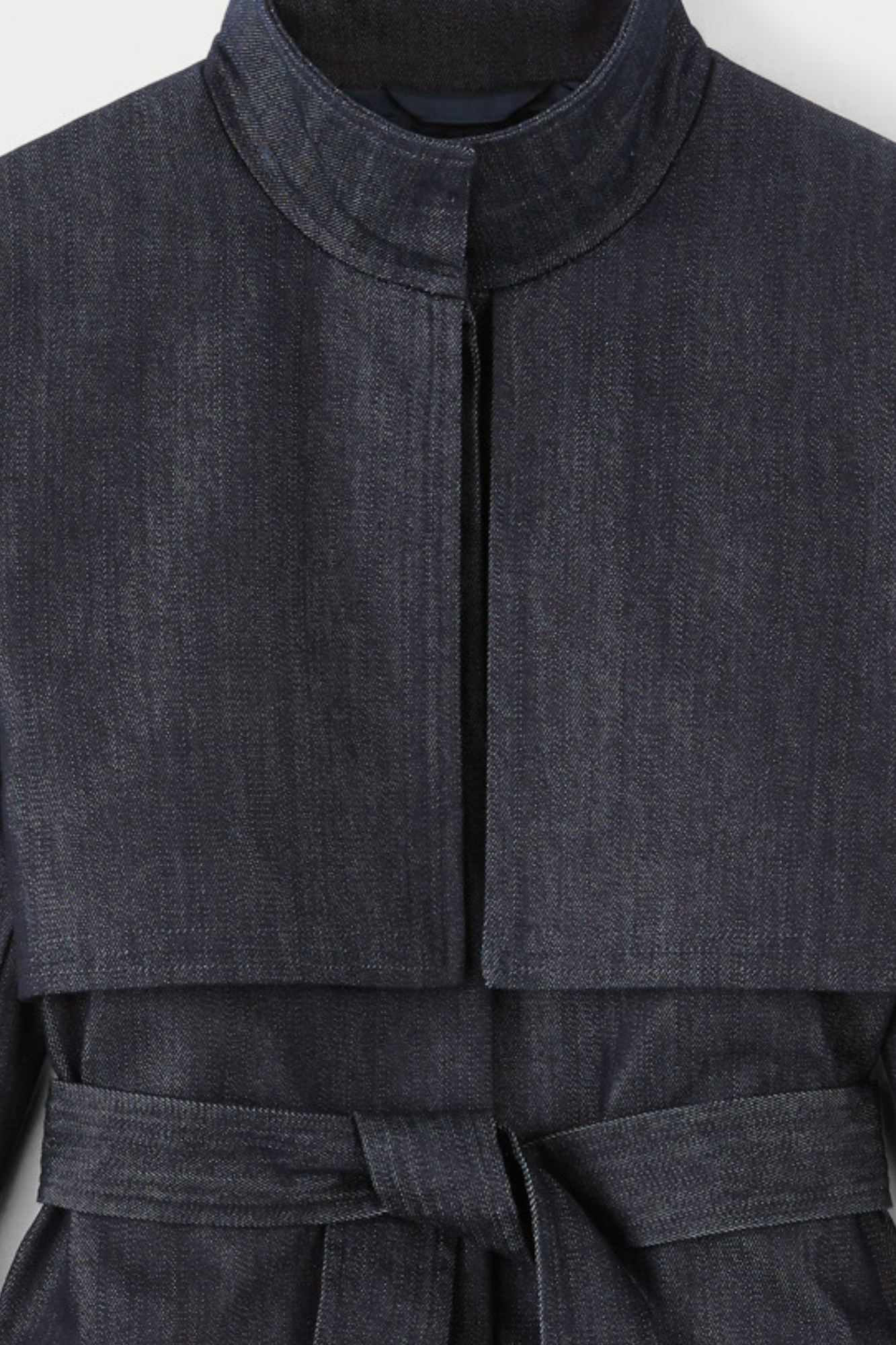 • Sophisticated short denim trench coat with a contemporary silhouette.