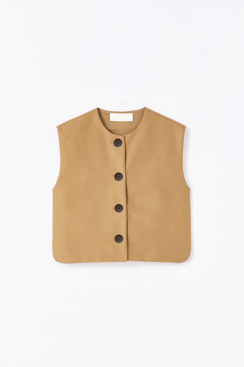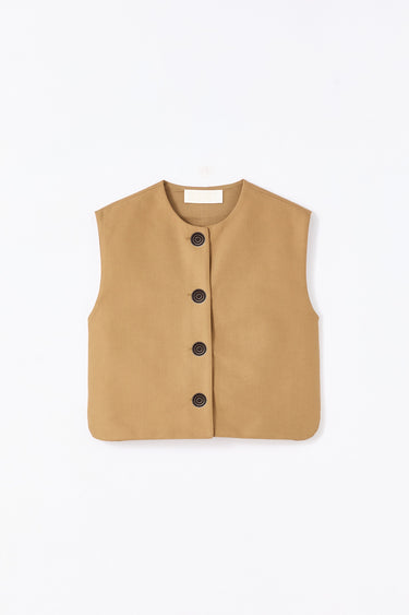 Camel buttoned cotton sleeveless vest