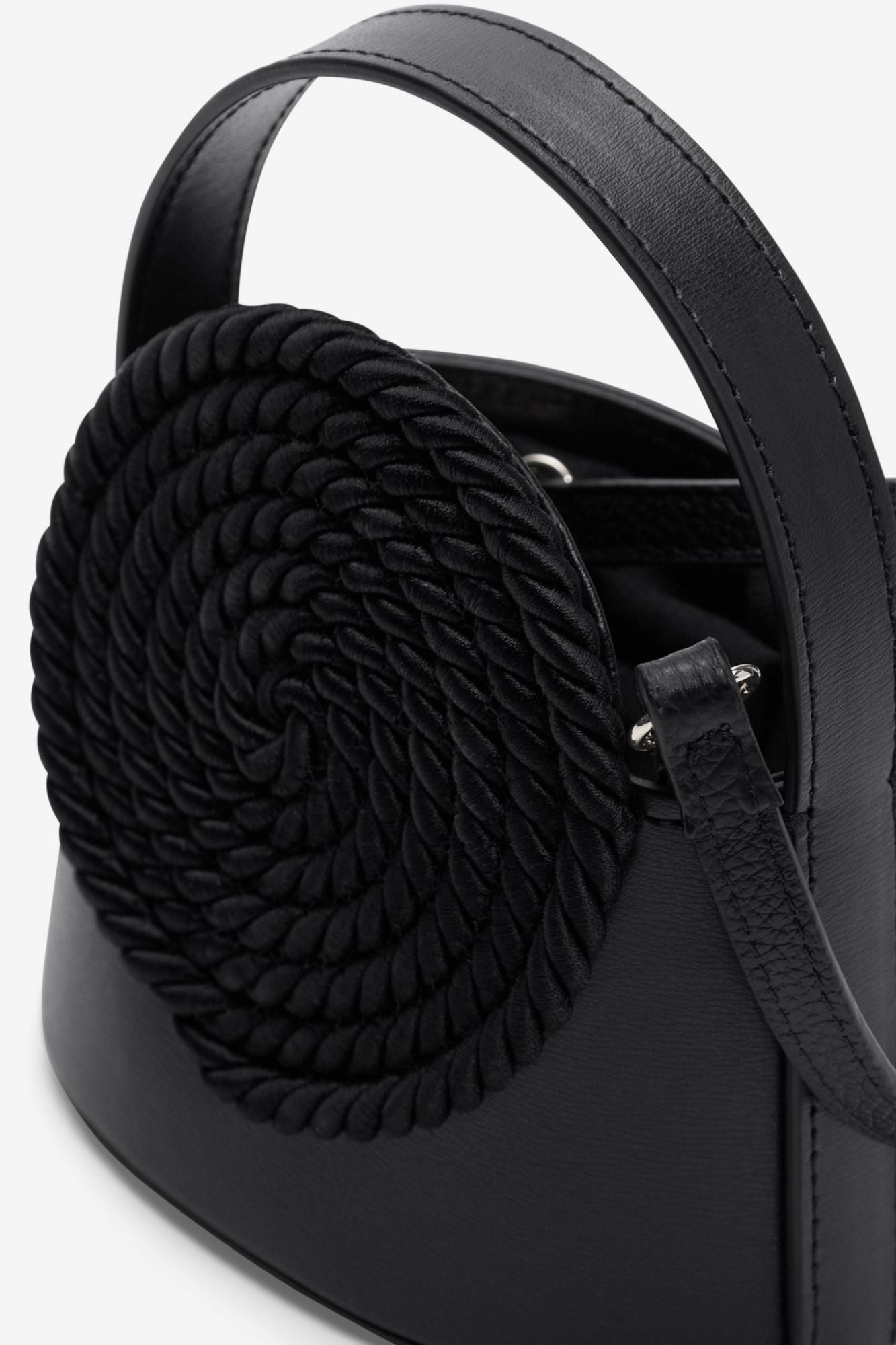A mini take on the Gunther Passementerie bag, crafted in Spain. Its structured silhouette features a black cotton drawstring pocket and a strap for crossbody wear. The tone-on-tone passementerie detail adds a distinctive, geometric touch inspired by French craftsmanship.