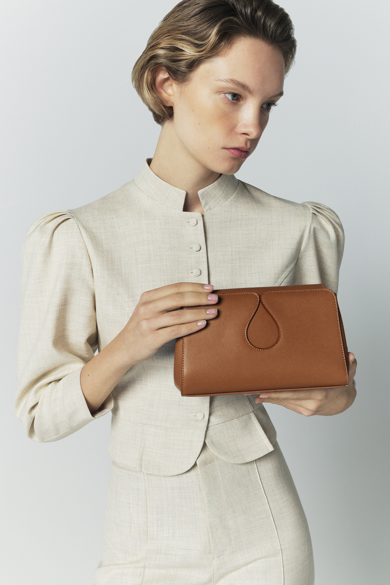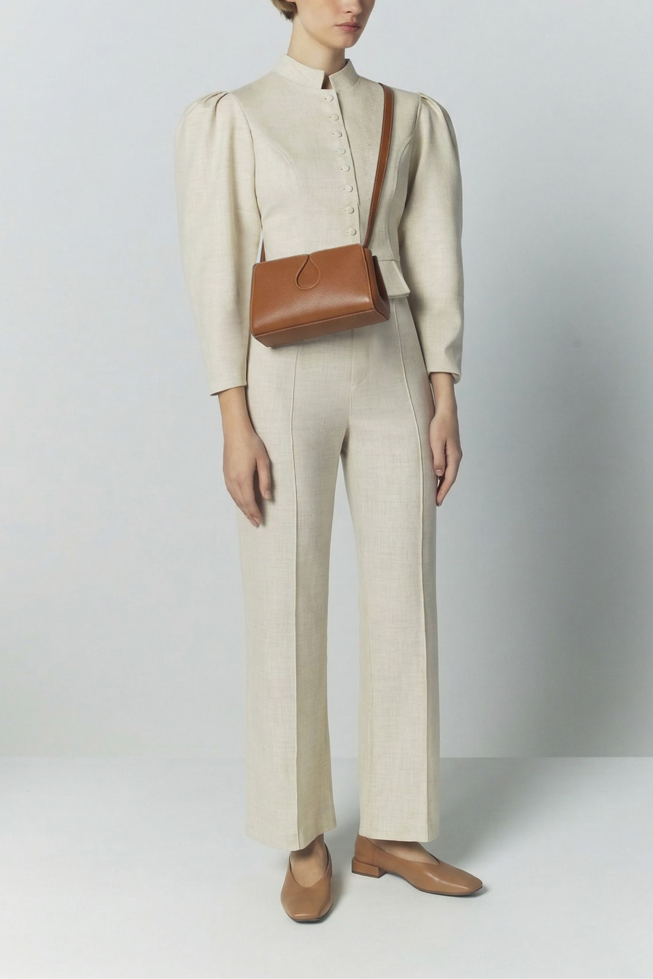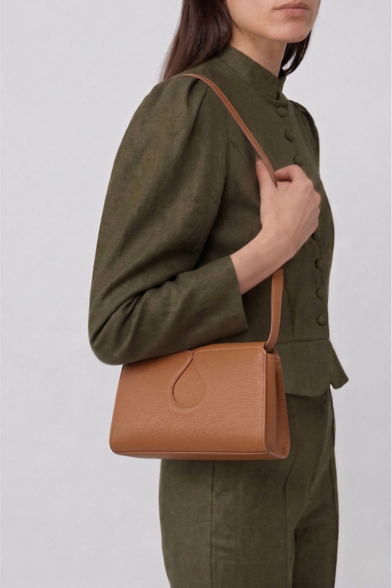 - Compact crossbody silhouette with clean, structured lines