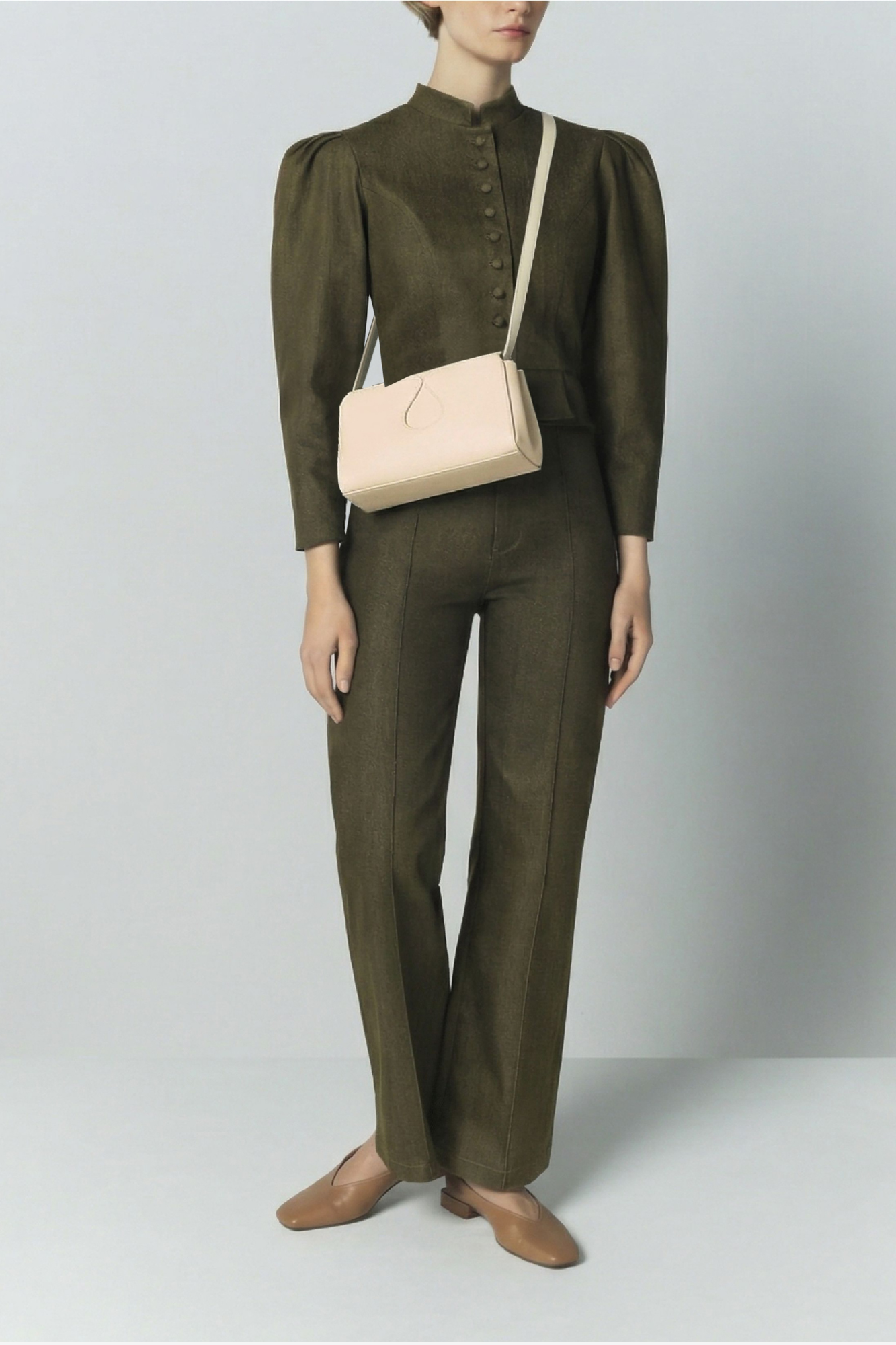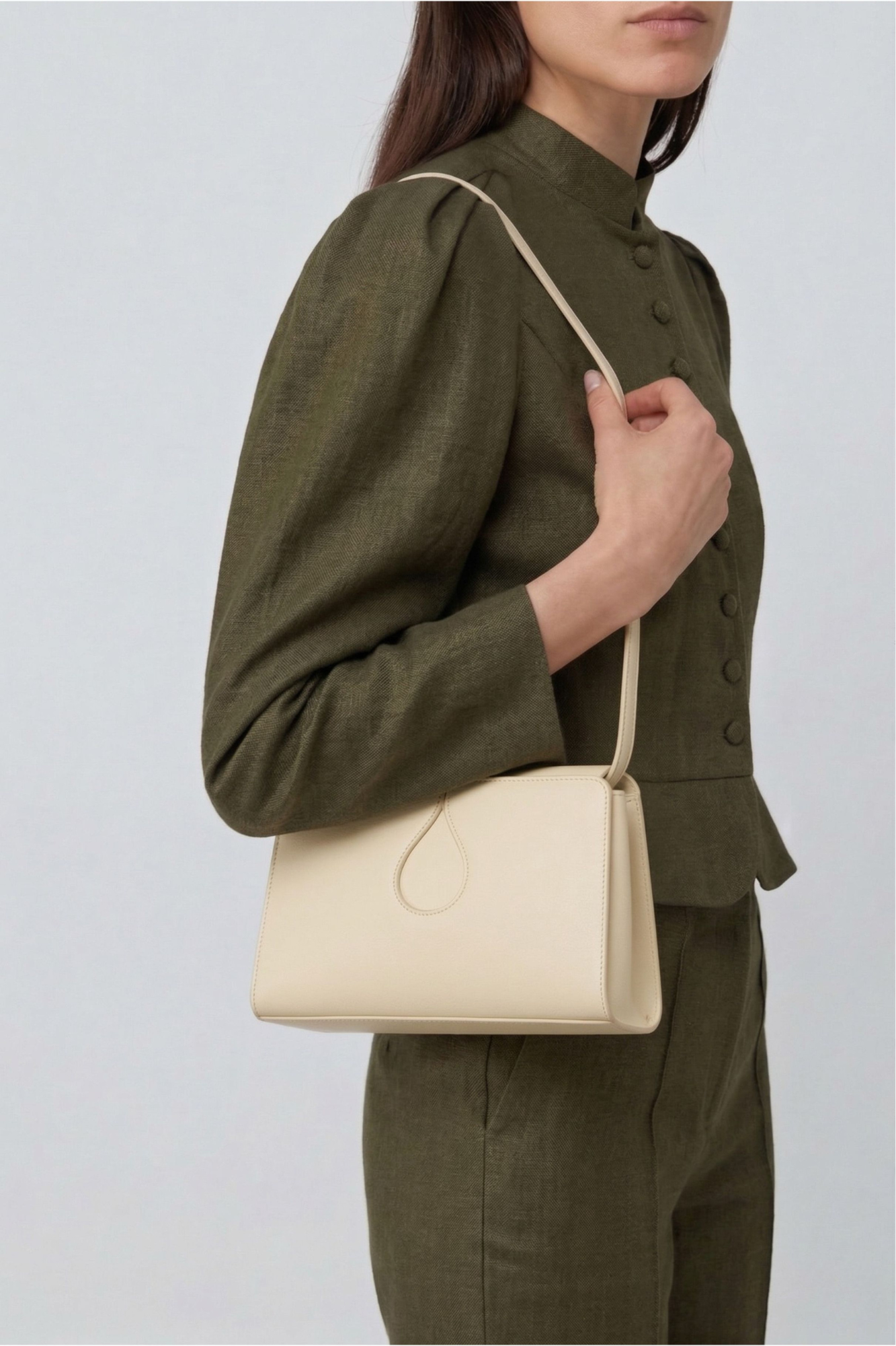 - Compact crossbody silhouette with clean, structured lines