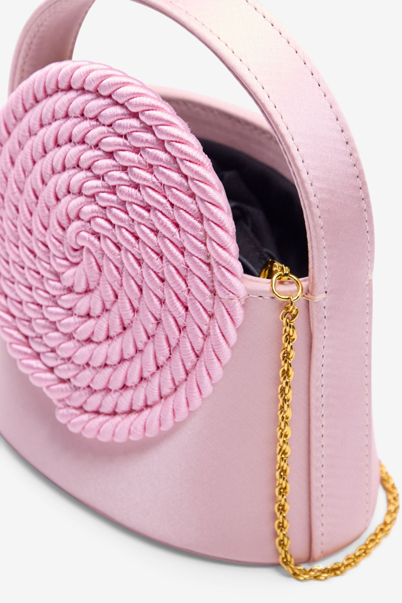 A mini take on the Gunther Passementerie bag, crafted in Spain. Its structured silhouette features a black cotton drawstring pocket and a chain for crossbody wear. The tone-on-tone passementerie detail adds a distinctive, geometric touch inspired by French craftsmanship.