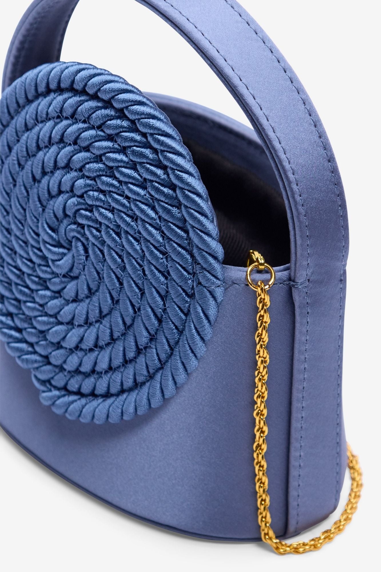 A mini take on the Gunther Passementerie bag, crafted in Spain. Its structured silhouette features a black cotton drawstring pocket and a chain for crossbody wear. The tone-on-tone passementerie detail adds a distinctive, geometric touch inspired by French craftsmanship.