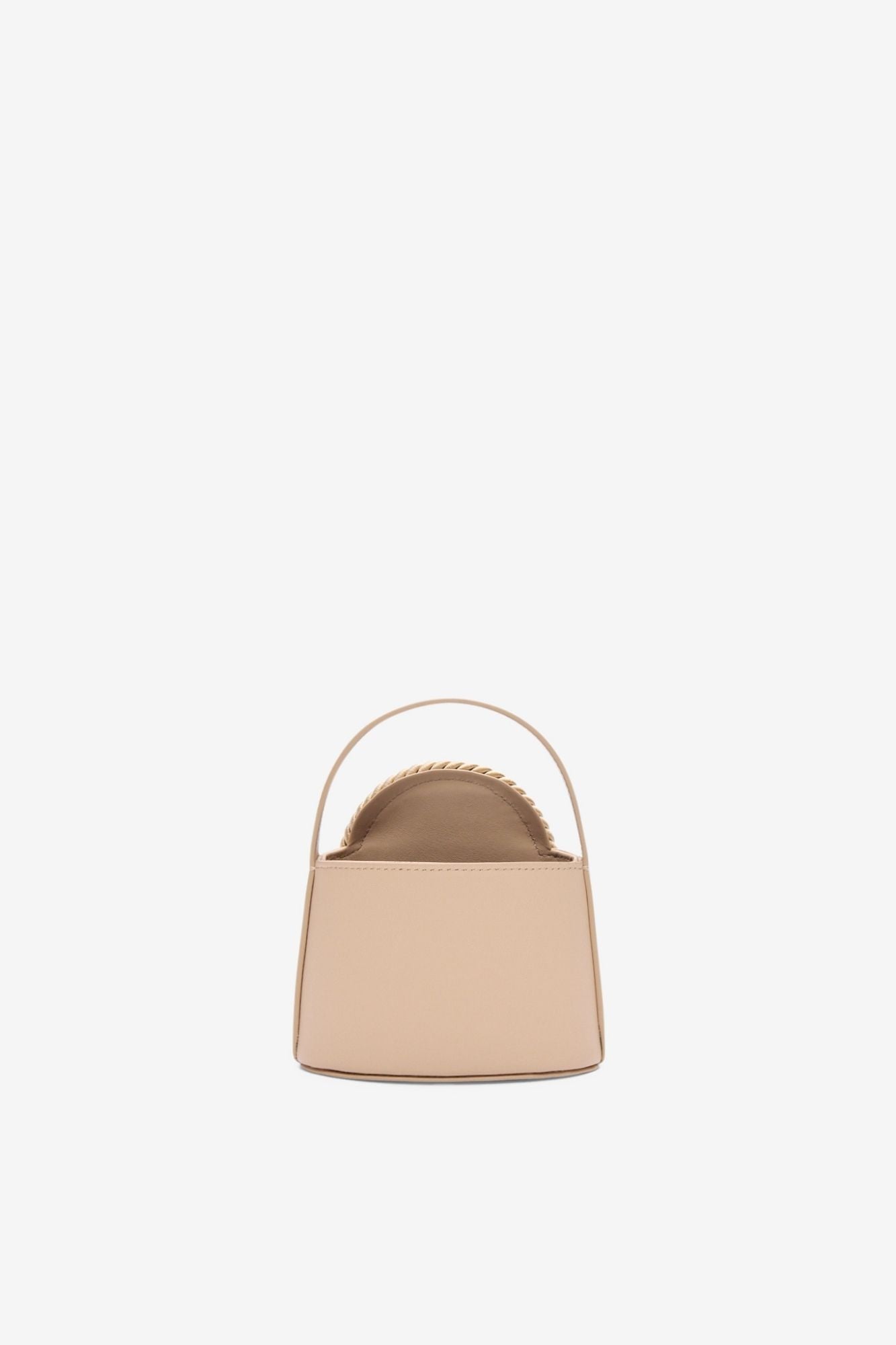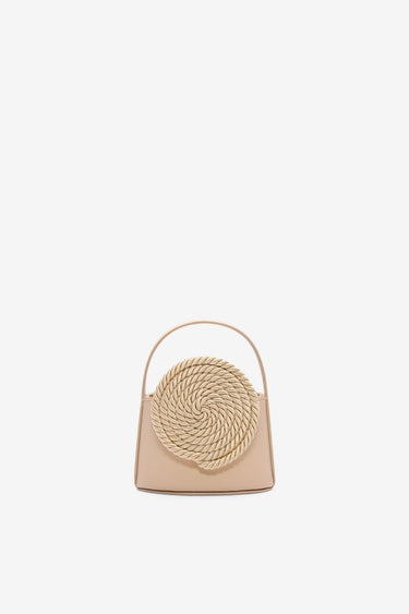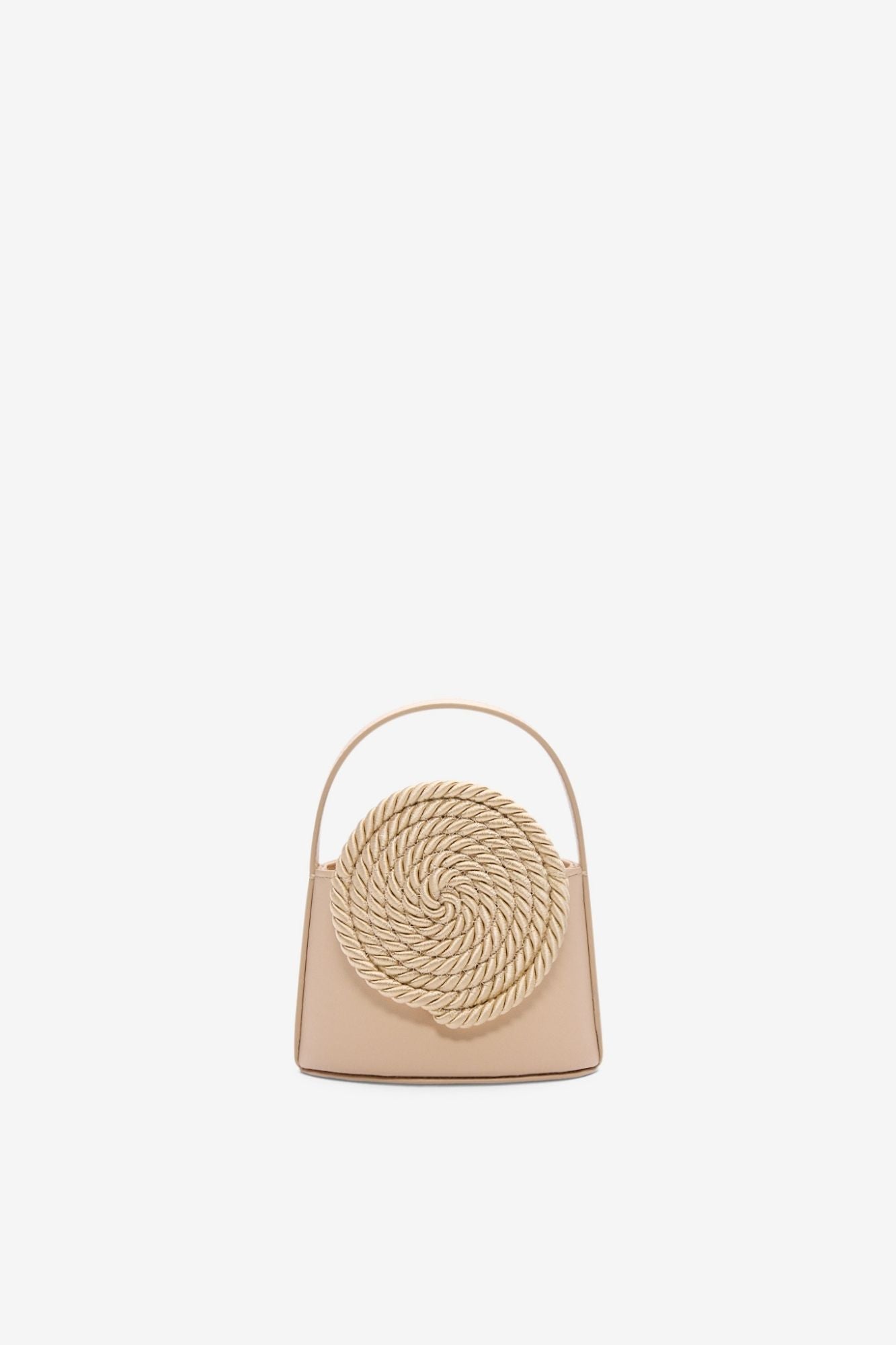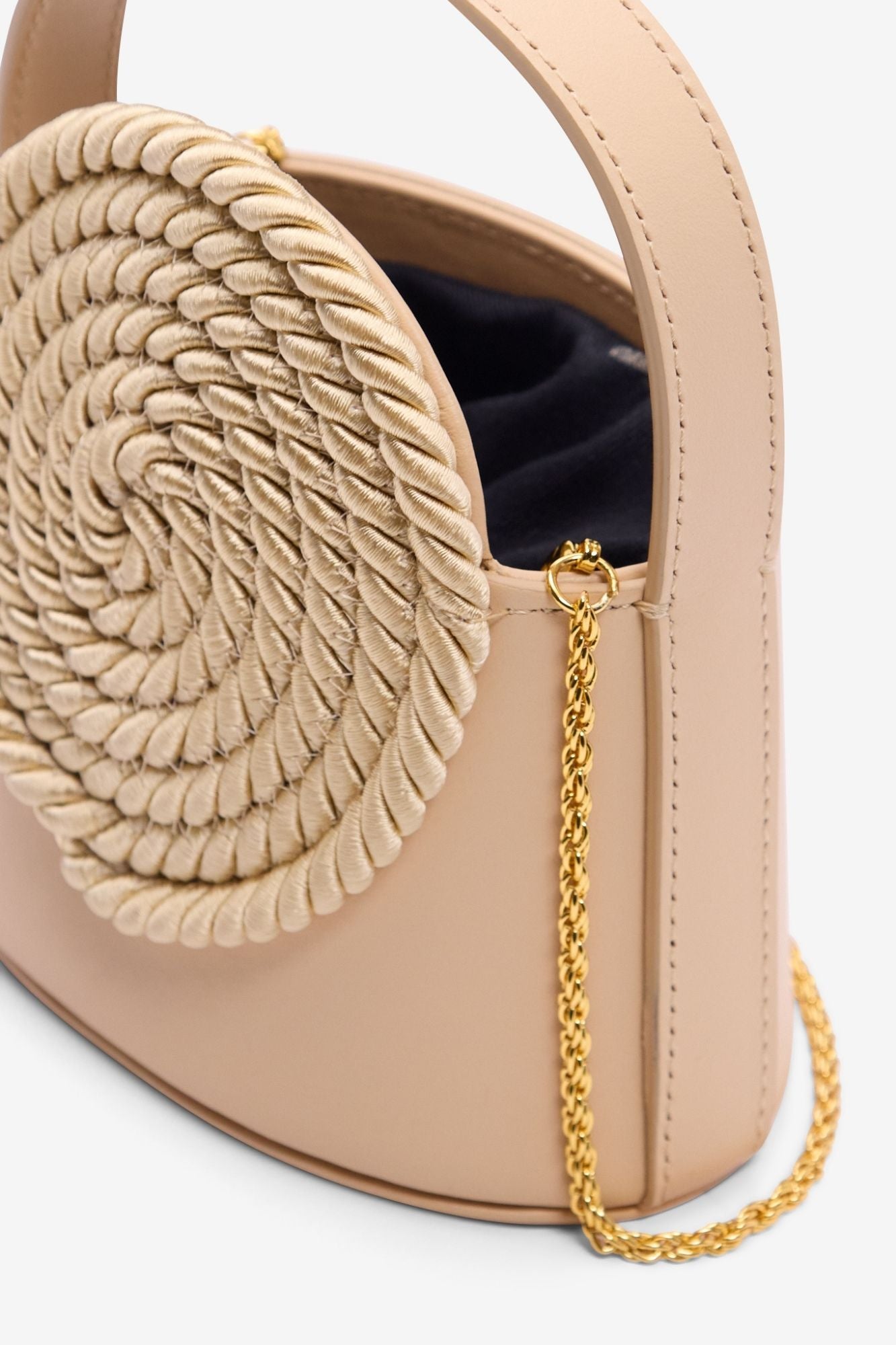 A mini take on the Gunther Passementerie bag, crafted in Spain. Its structured silhouette features a black cotton drawstring pocket and a strap for crossbody wear. The tone-on-tone passementerie detail adds a distinctive, geometric touch inspired by French craftsmanship.