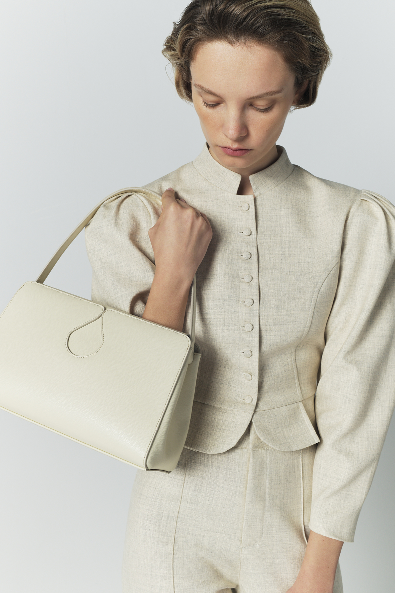 Sac porté épaule en cuir ivoire avec détail en forme de goutte
